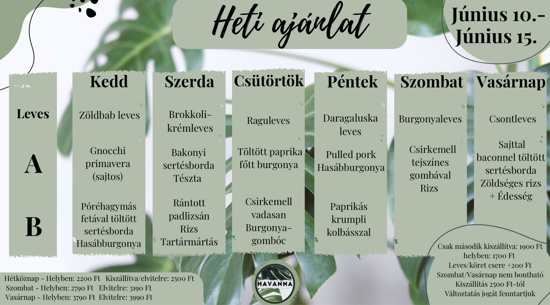 Szombaton: 2790 Ft itt fogyasztva. Elvitelre 3380 Ft.