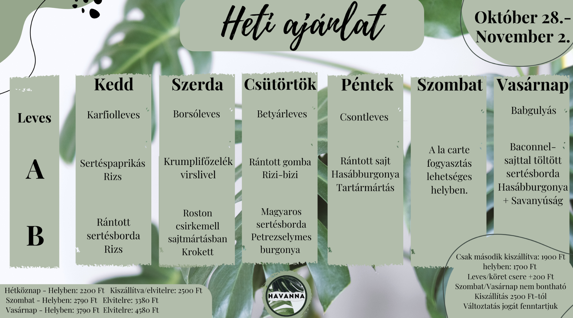 Szombaton: 2790 Ft itt fogyasztva. Elvitelre 3380 Ft.