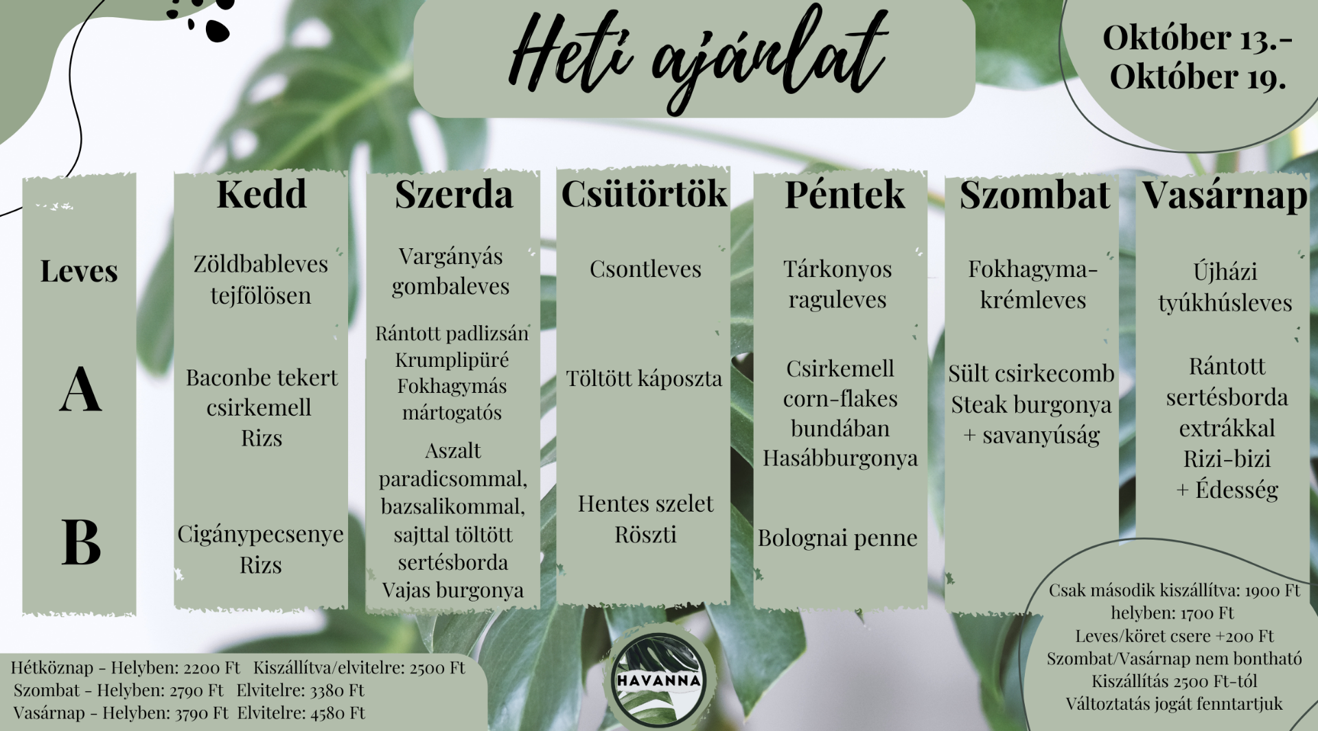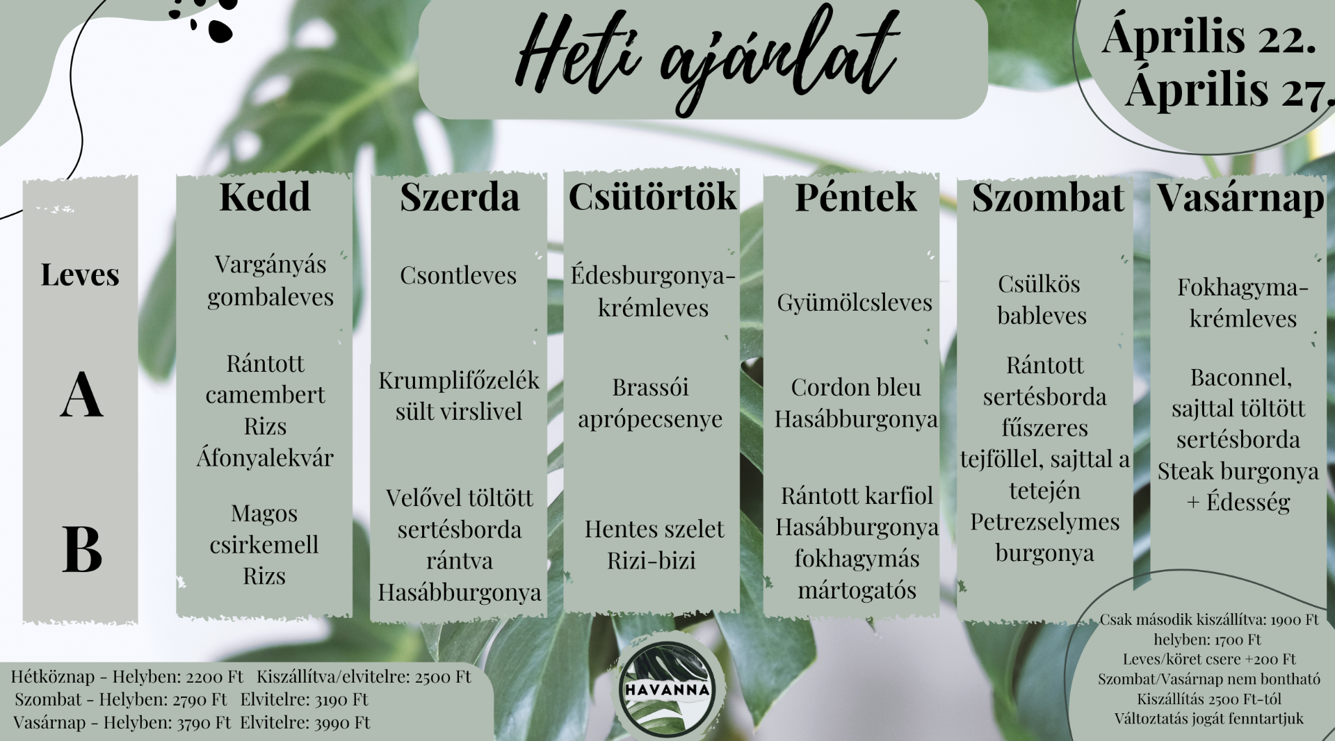 Szombaton: 2790 Ft itt fogyasztva. Elvitelre 3380 Ft.